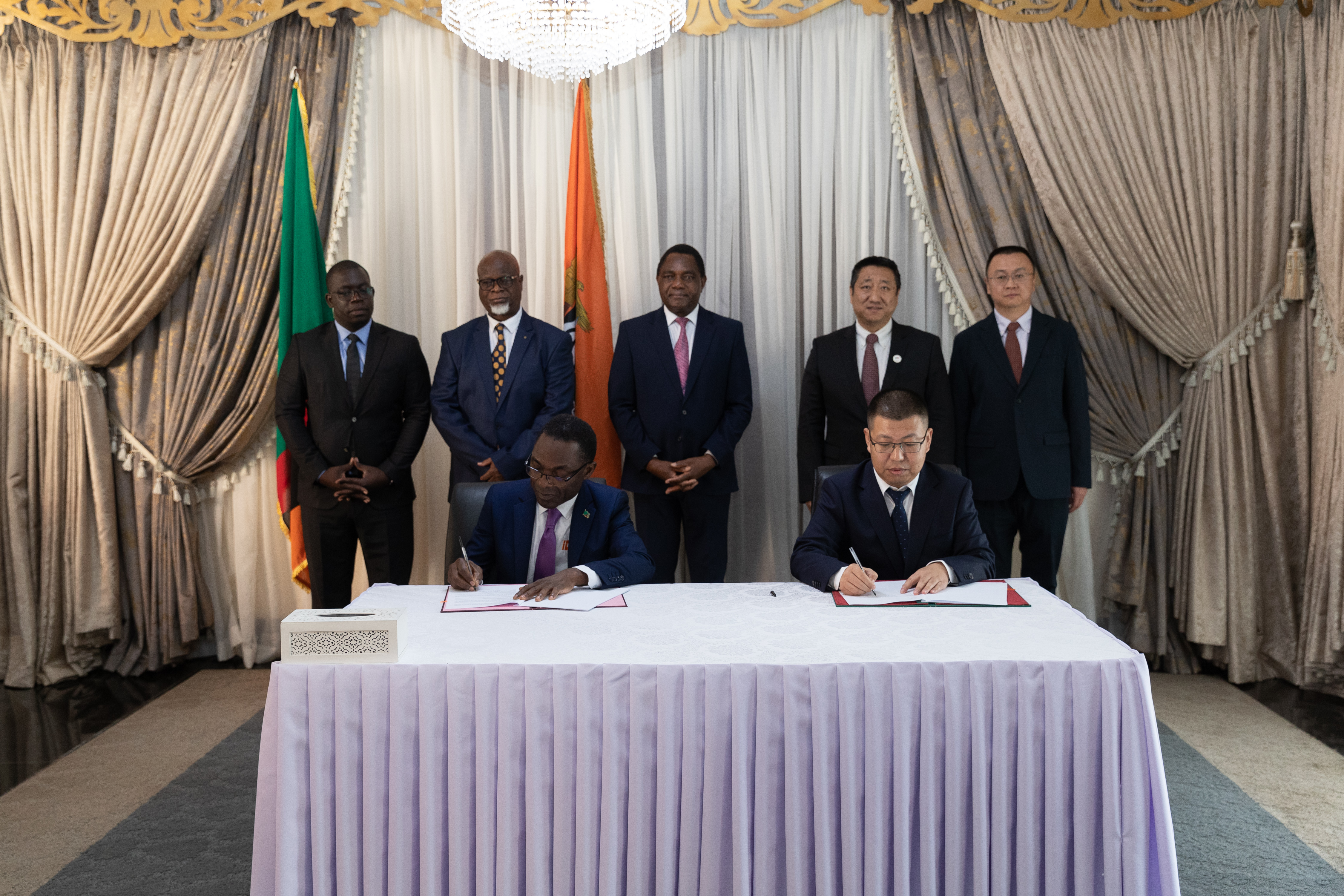 في 7 أكتوبر/تشرين الأول 2024، حضر السفير الصيني لدى زامبيا، هان جينغ، حفل توقيع مذكرة تفاهم بين شركة جي جيا (بكين) الدولية للتكنولوجيا الطبية المحدودة ومؤسسة التنمية الصناعية الزامبية (IDC) للتعاون في بناء مصنع لقاحات. وحضر الحفل الرئيس الزامبي هيتشيليما، ووزير الصحة، ووزير التجارة والصناعة، ومسؤولون حكوميون آخرون، وممثلون عن الشركات الصينية والزامبية المعنية